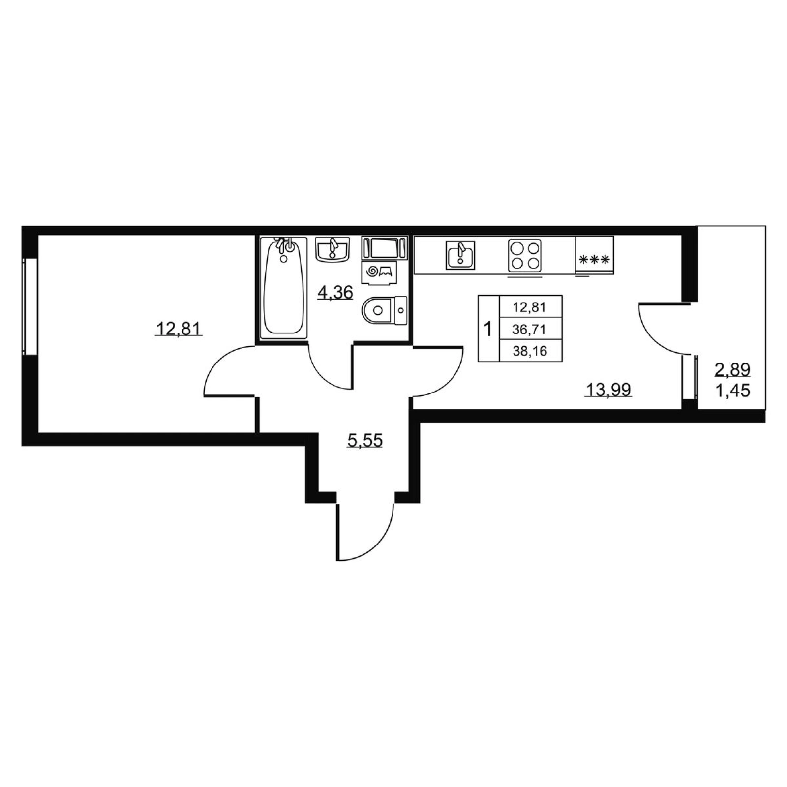 Площадь недвижимости:38.16 м2