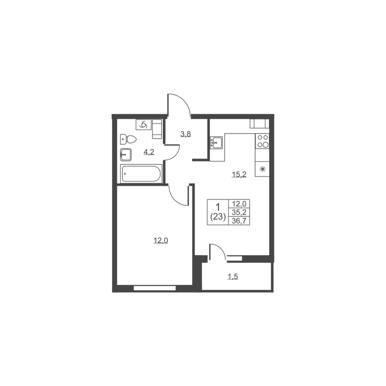 Площадь недвижимости:36.7 м2